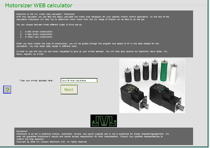 MotorSizer.com is a web based software free available on the internet. It makes it very simple to determine the required motor and gear sizes for a specific application in machine construction, education and research.